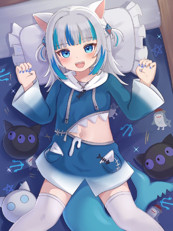 : ベッドの上のサメちゃん